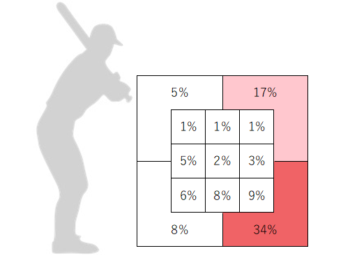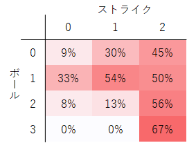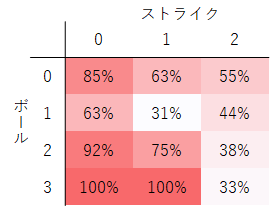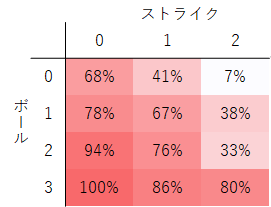 - ボール先行のカウントでは低めを思い切って狙う!(左右3-0、左3-1の時は100%)