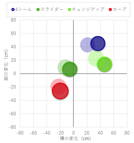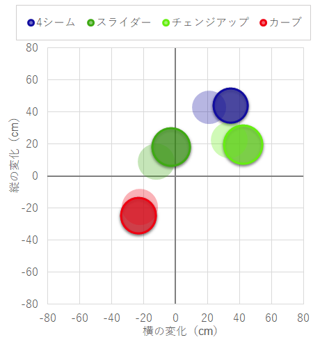| チェンジアップ | 140 | 90 | 3 | 0 | 6 |