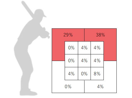 しかし注意しなければならないこともあります。上原投手は大きく伸びる4シームを高めの厳しいコースに投球し続ける高いコマンド力があります。ホップが大きくない4シームや、高めに投げ切れずに真ん中周辺に来たボールは打者にとって格好のチャンスボールとなります。