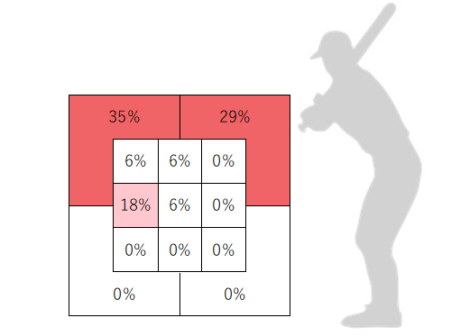 投球割合をみると、対右打者、対左打者ともに同様の割合で投球しています。昨シーズンは、2シーム、カットボールと変化の小さな「動くボール」を投球していましたが、今シーズンはまだ投球していません。