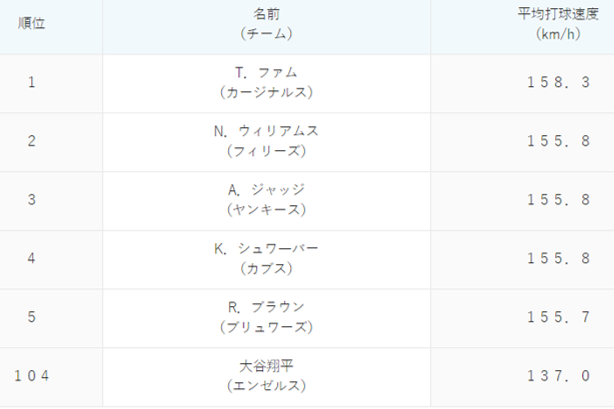 | 104 | 大谷翔平 (エンゼルス) | 137.0 |