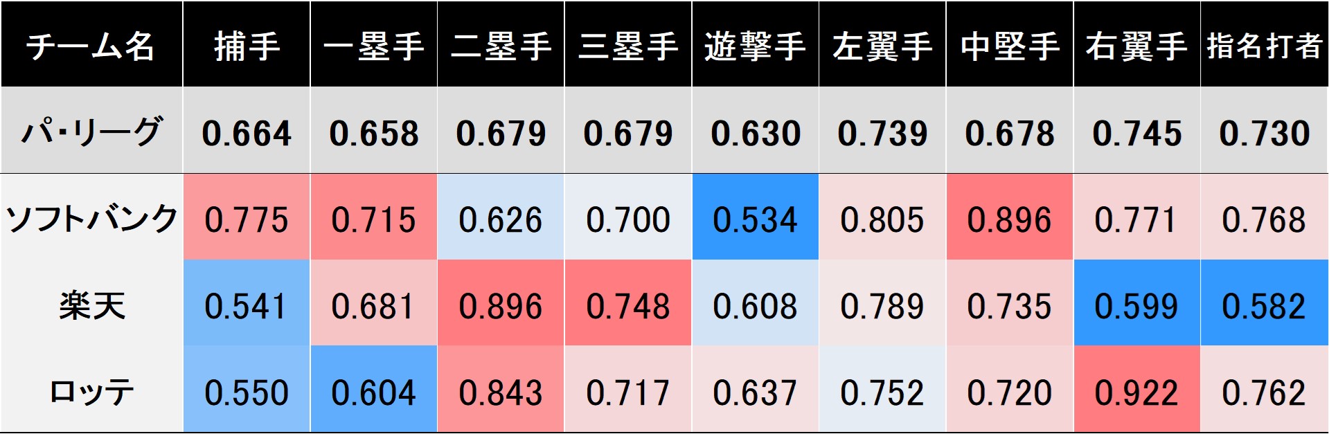 参考:【パ・リーグ】3・4月のポジション別OPSを分析!好調ソフトバンクは3ポジションで圧倒!